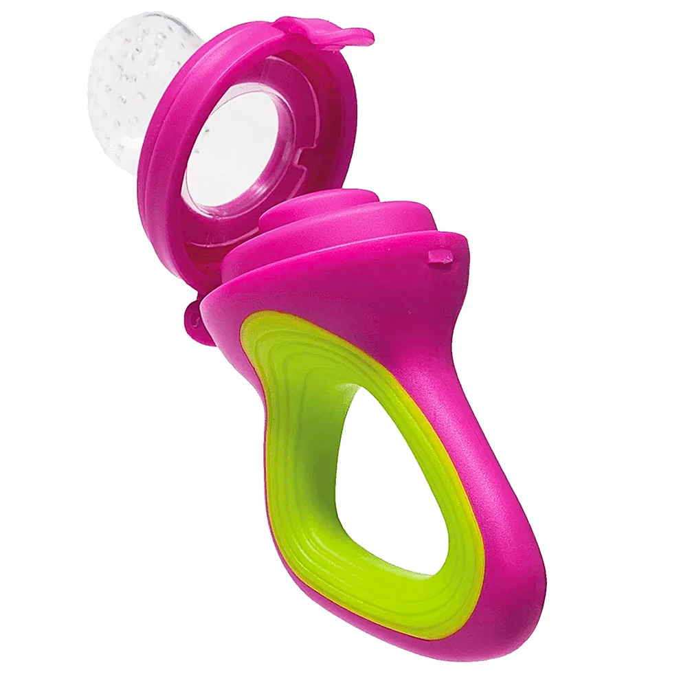 Com design ergonômico, possui cabo antideslizante que facilita o manuseio pelas mãozinhas do bebê. O sistema de abertura prática permite colocar frutas frescas com facilidade, sendo ideal para aliviar o desconforto do nascimento dos dentinhos ao usar frutas geladas.