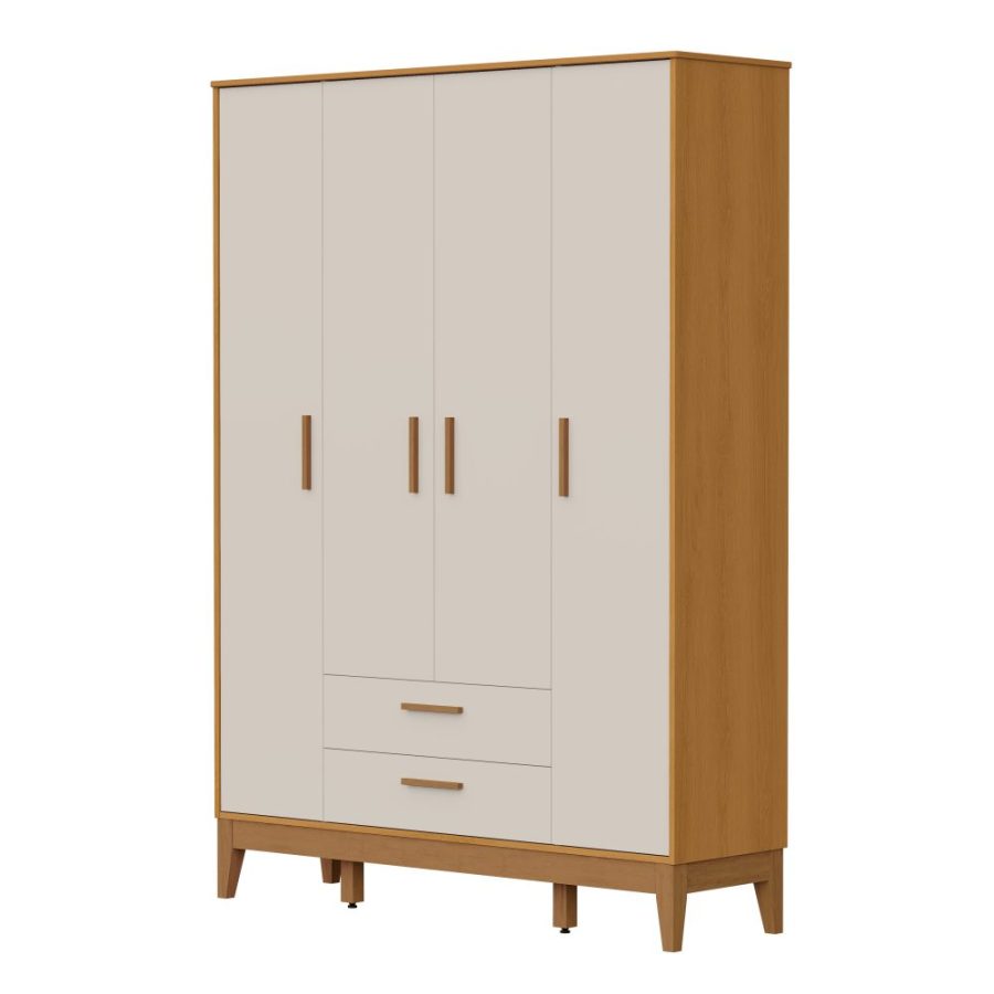 O Roupeiro Flip é produzido em 100% MDF, oferecendo resistência, durabilidade e um excelente acabamento. Com 4 portas e gavetas, proporciona ótima divisão interna para organizar roupas e acessórios com praticidade. Possui corrediças telescópicas que garantem abertura suave, puxadores em MDF revestido que valorizam o design e pés em madeira, que oferecem estabilidade e facilitam a limpeza.
