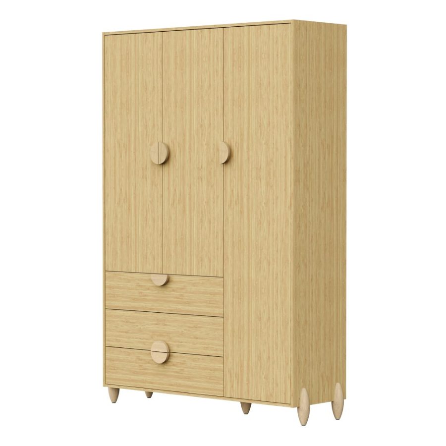 O Roupeiro Gracia produzido com estrutura 100% em MDF, oferece firmeza, durabilidade e excelente acabamento. Conta com 3 gavetas espaçosas, equipadas com corrediças telescópicas que garantem abertura suave e 3 portas com dobradiças amortecedoras, proporcionando fechamento silencioso e seguro. O acabamento refinado sem parafusos expostos, puxadores e pés em madeira trazem um toque de aconchego e sofisticação ao móvel. Internamente, o roupeiro dispõe de prateleiras bem distribuídas e cabideiros metálicos, facilitando a organização de roupas e acessórios.