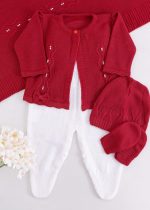 Saída Maternidade Bebê em Tricô Vermelho – 5 peças