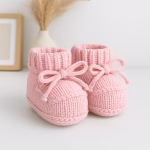 Sapatinho de Tricô Para Recém-Nascido – Rosa com Cordão
