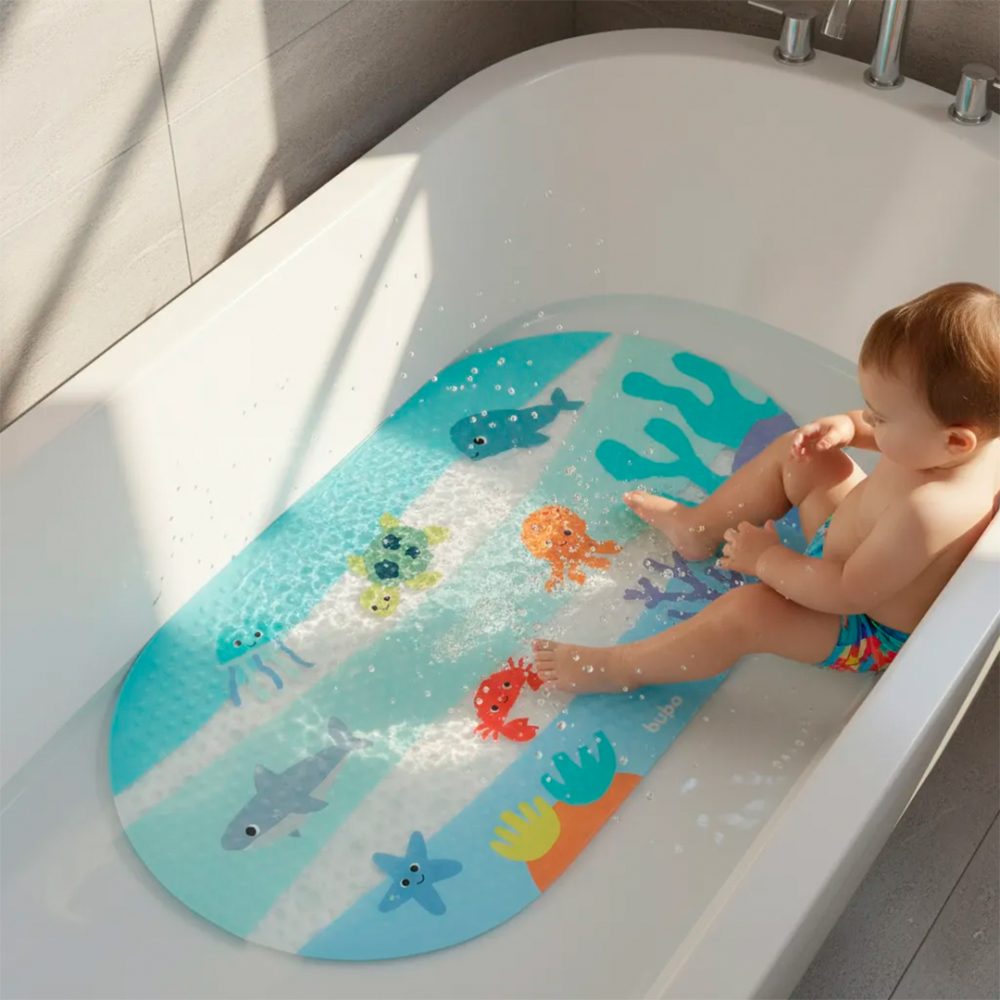 O Tapete Antiderrapante de Banho Buba foi desenvolvido para tornar o banho do bebê mais seguro, confortável e divertido. Com textura antiderrapante e ventosas na parte inferior, fixa firmemente no fundo da banheira, ajudando a prevenir escorregões.