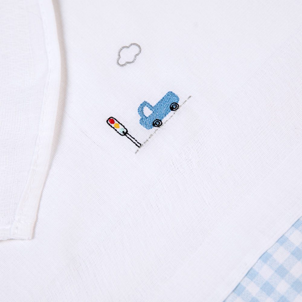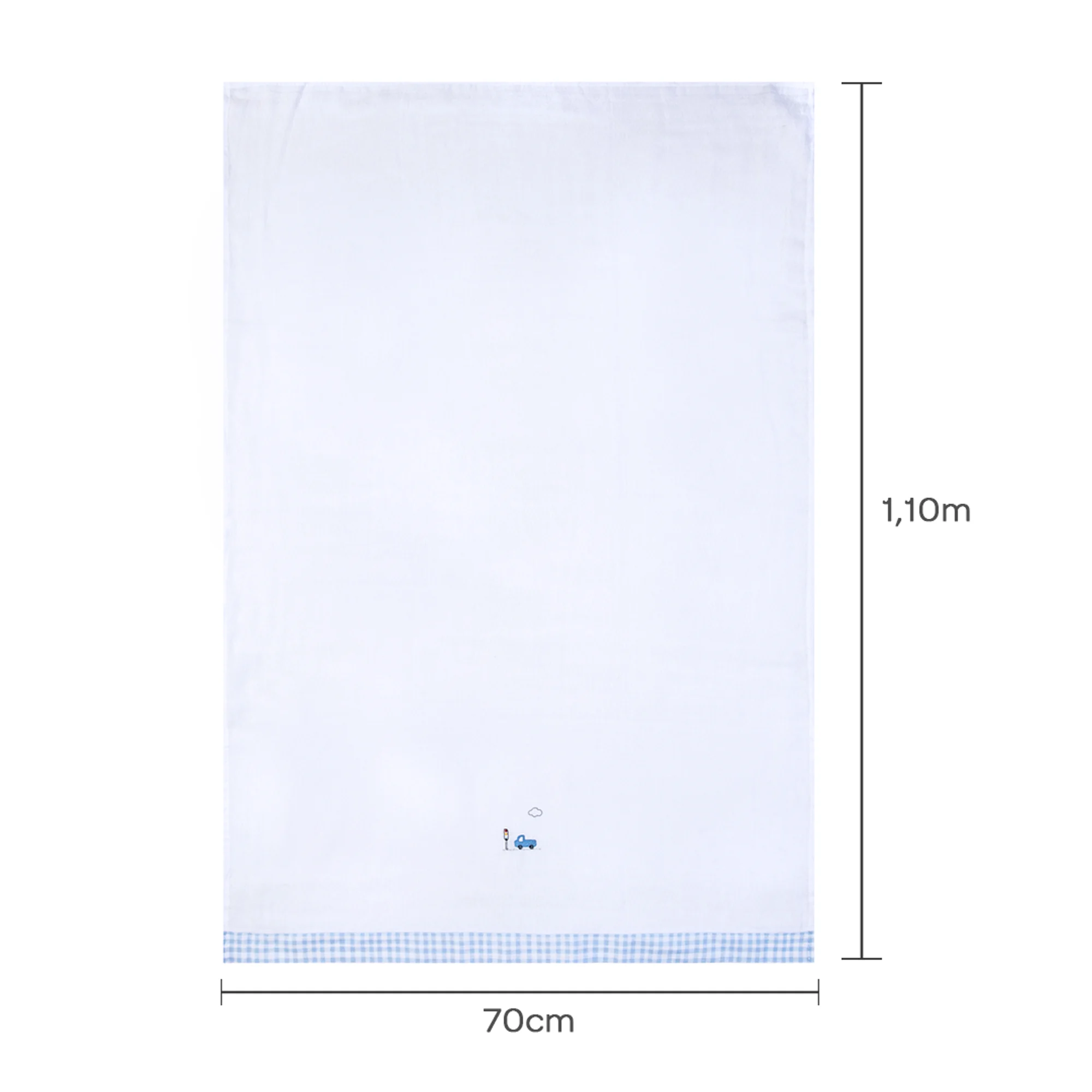 A Toalha de Fralda Papi é confeccionada em 100% algodão, garantindo toque macio, alta absorção e conforto para a pele delicada do bebê. Possui faixa estampada e bordados com carrinhos e nuvens, trazendo um charme especial ao enxoval.