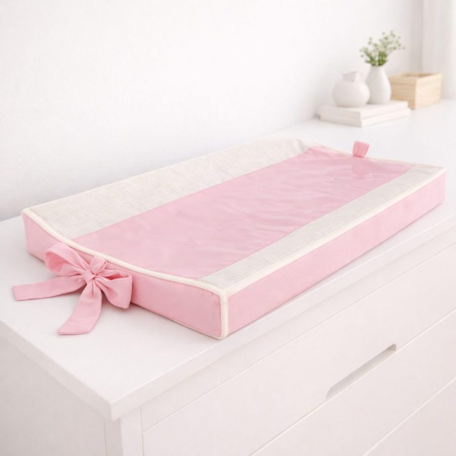 Trocador de Bebê Anatômico Linho com Rosa