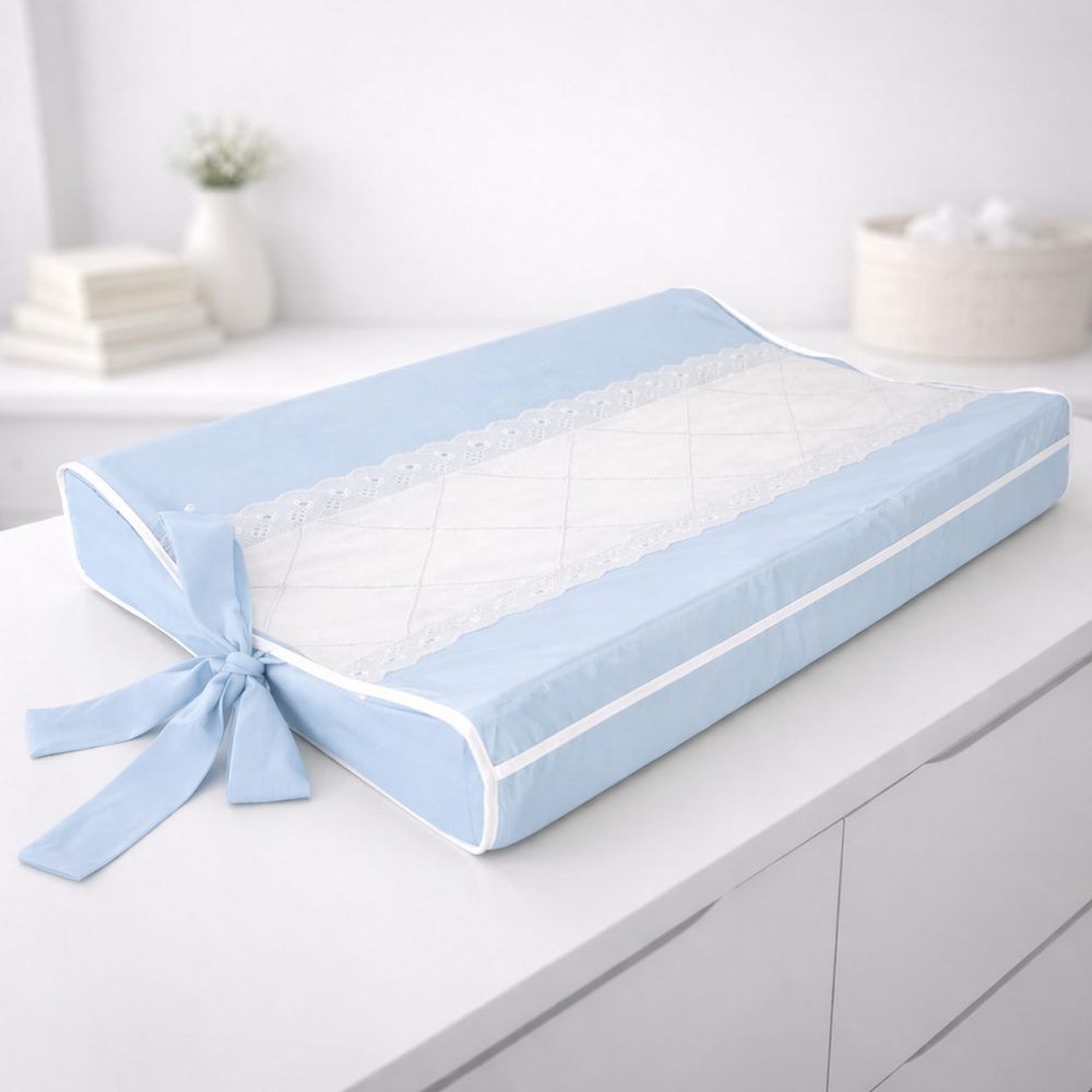 O destaque fica por conta do detalhe central em linho com acabamento delicado em renda e laço lateral, que traz charme e sofisticação ao enxoval. Seu design foi pensado para encaixar perfeitamente sobre a cômoda, garantindo praticidade no dia a dia e um visual harmonioso no quarto do bebê.